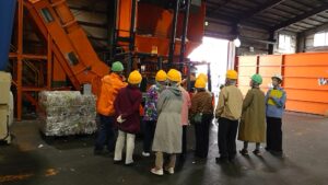 見学では、コンベヤ上を流れるプラスチックを人の目と手で確認しながら選別する様子や、安全確保・品質確保のための工夫について説明しました。